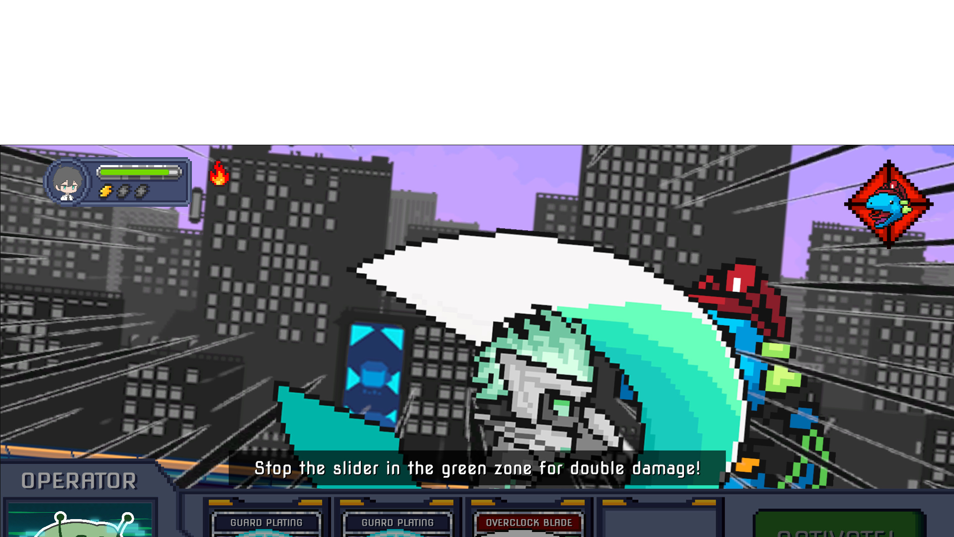 When Overdrive is chosen, the Overdrive Slider appears. Stop the moving slider when it lands on the green zone to unleash double damage. Missing the green zone causes the attack to fail and the player takes the damage instead, so time it carefully!